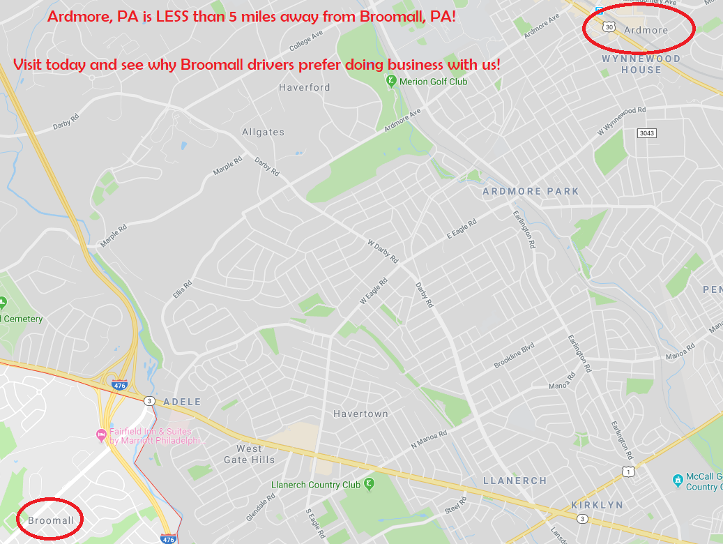 Are you looking for a Used or New car dealerships near me in the Broomall PA area? We are conveniently located within 5 miles of Broomall. Just a short trip down Darby Road and Lancaster Avenue and easy to get to if you are looking for a GREAT deal and a GREAT experience! We have access to most any Certified Chevy SUV, car, or Truck. Looking for a used Honda, Toyota, Subaru, Dodge, Ford and more? We can get it for you! If you want to be treated right from a dealer that takes pride in their Pre-Owned vehicles, then check us out!